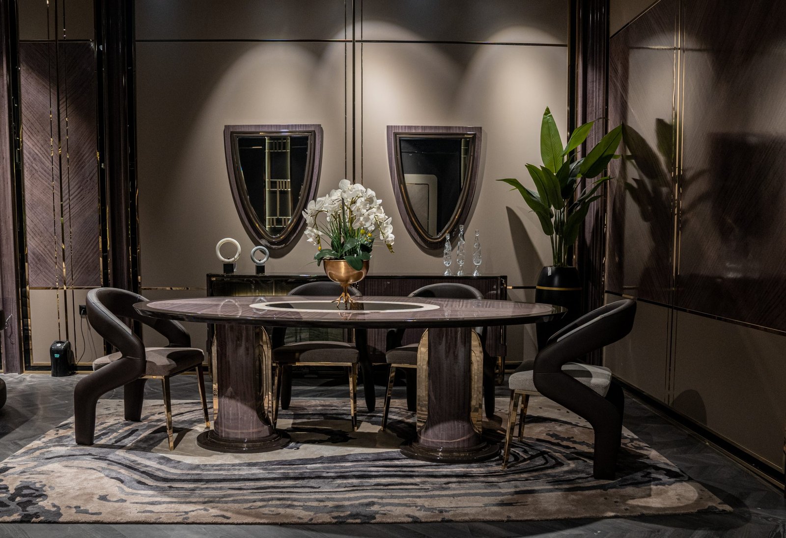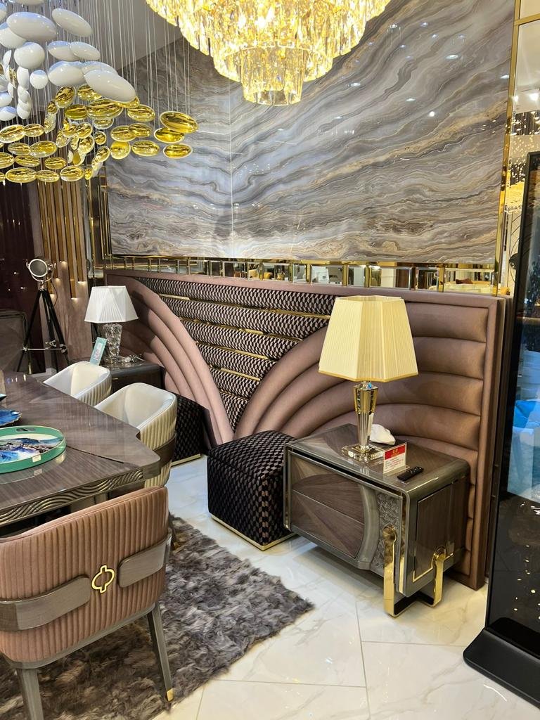 • Furniture: Custom designs for living, dining, and bedroom in luxury style.