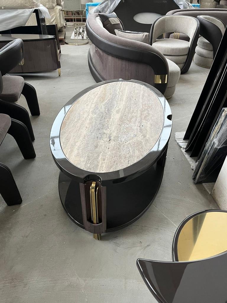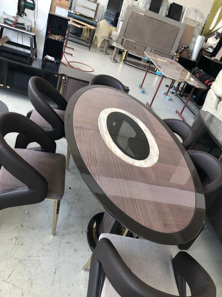 Execution was carried out according to the required standards and materials, using the highest quality marble, natural veneer-coated wood, and the finest fabrics and foam.
