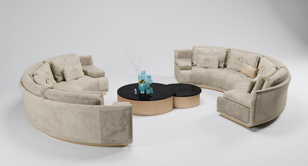 Materials: High-quality marble, natural veneer wood, premium fabrics, and foam.