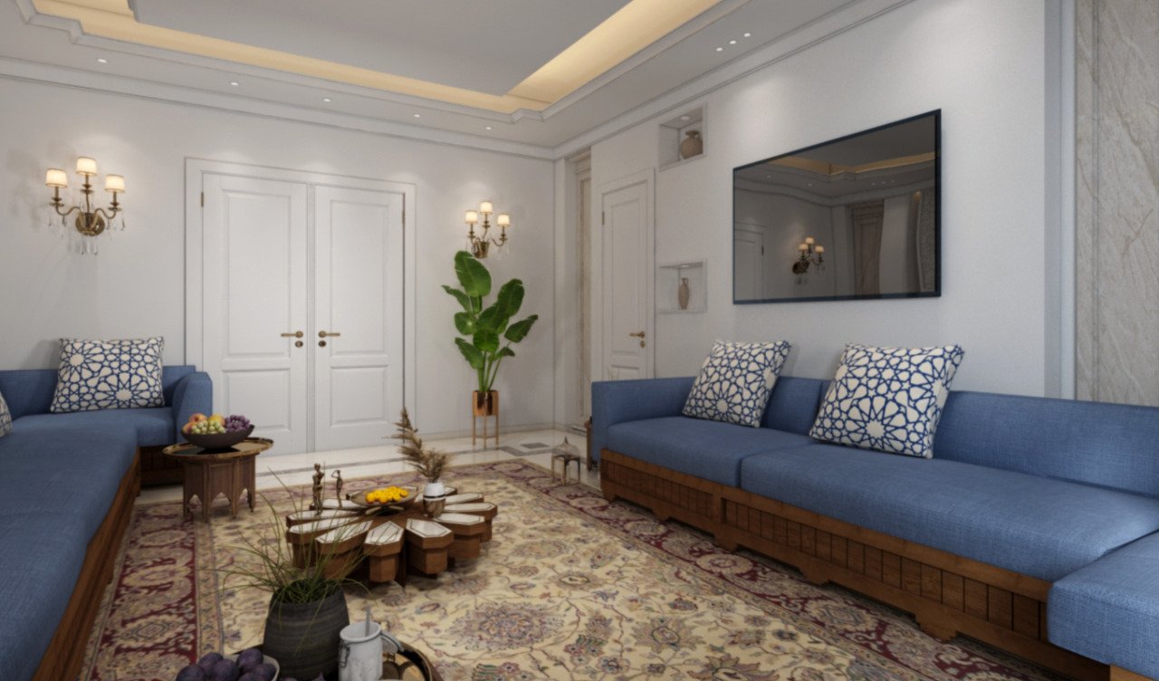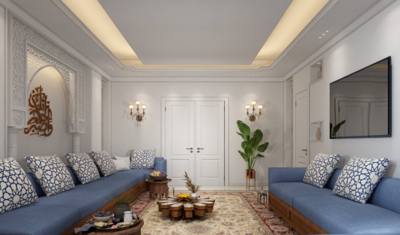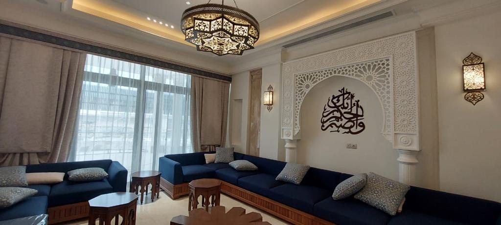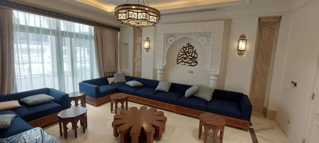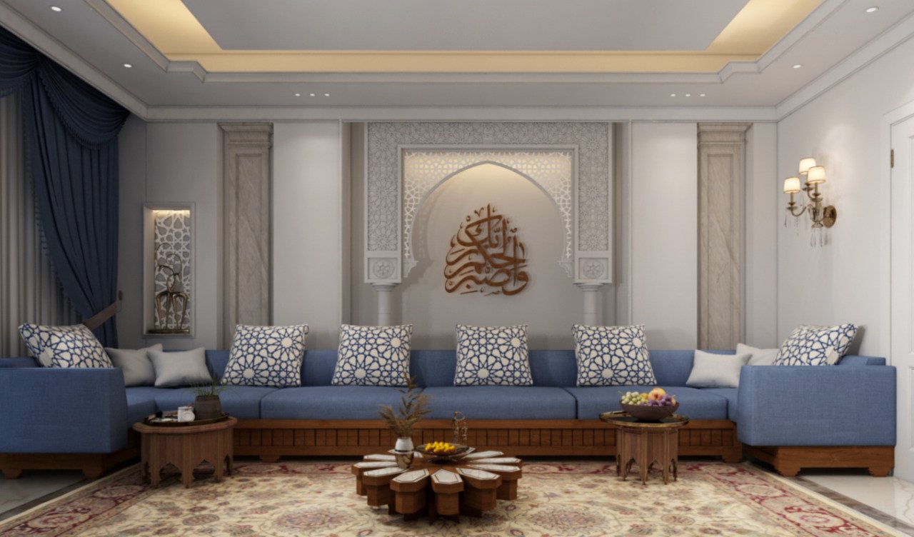 • Majlis: Islamic style with wooden décor, columns, and Arabic calligraphy via CNC.