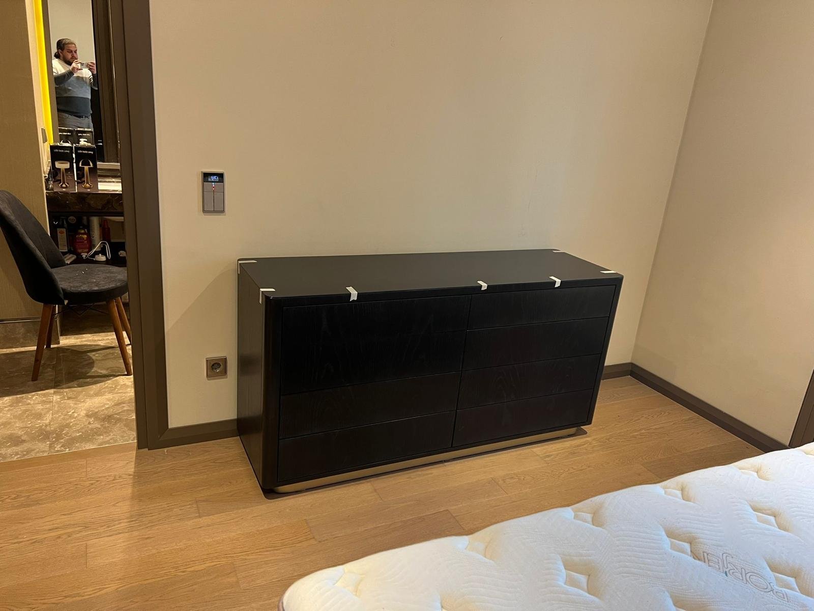 The highlight of the project was the unique veneer on the wooden pieces combined with the paint color and final antiquing touch, which added exceptional elegance and luxury. This was one of our finest projects, especially considering the time challenge, as the client requested completion within only 20 days.